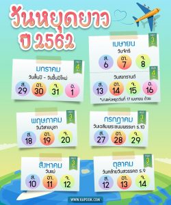 วันหยุดปี 2562 ปฏิทินวันหยุดราชการ 2562